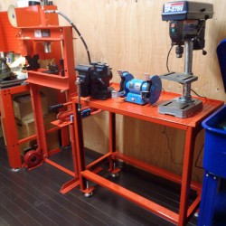 本日のWORK 2011年12月6日 エンジンメンテナンス 昨日、作製した卓上ボール盤及び万力の固定台、ペンキがまだ乾いてない・・・・・・しか~しエンジンマウント穴掘り作業が 分かっちゃいるけど”待て”が出来ない 匠でした アルミの粉がへばり付いてしもた~