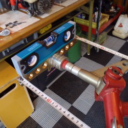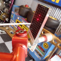 ステアリングナックルにトーインゲージ及びSniper V2 INOXを取り付けハンドルを固定、ホイールベース及びトーイン調整、メージャーとレーザーにて微妙な差を見てみました