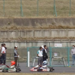 午後からの決勝ヒート(12周)雲行きが怪しくなる、3番手より無難にスタートを決め2コーナー立ち上がり、前車のスリップを使い3コーナー飛び込みで2番手に浮上、前車の背後にピタリと付けその数周後3コーナーでトップに浮上、次の25Rで抜かされるが、最終コーナーでトップにと・・・・・互いにやられたら、すぐやり返す展開が続く、そうしてる間にもう一台トップ争いに加わり3台で抜きつ抜かれずの攻防を繰り返す。2番手で向かえた10ラップ目の最終コーナー後続車と接触のコースアウト・・・・・戦列に復帰するが大きく順位を落とし19番手フィニッシュとなりました。