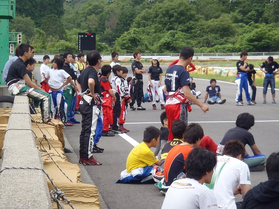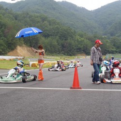 午後からの決勝ヒート12周、このクラス出走前からやや雨足が強くなる・・・・ここ最近この路面にトラウマとなってるHAMAちゃん がらに合わず緊張気味 皆でマイドコントロール暗示に賭ける(笑~い)