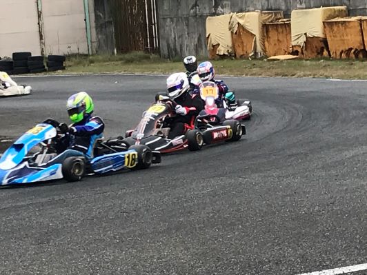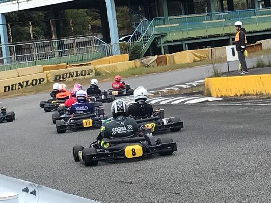 中山シリーズ最高峰クラスは、ROTAXマスターズクラスに6台、シニアクラスに5台と混走の11台賞典別にて、ヒート毎に順位が、入れ替わるという激しいレースに興奮!