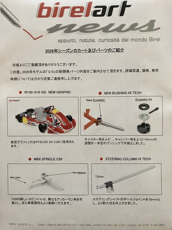 この時期になると、各カートメーカー来年度モデルの、”噂がちらほら”とCMされる時期となりました。(笑)早速2026年度のbirel art 「S19」の新開発パーツの情報が入って来ました。