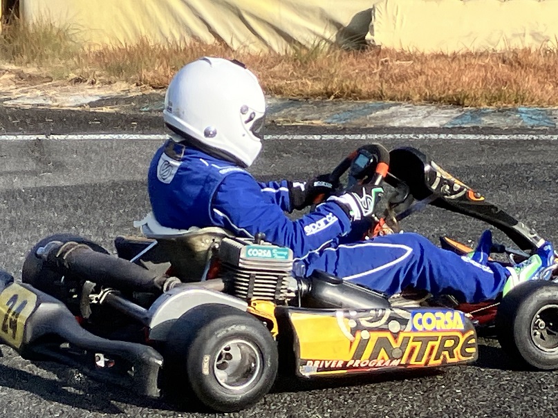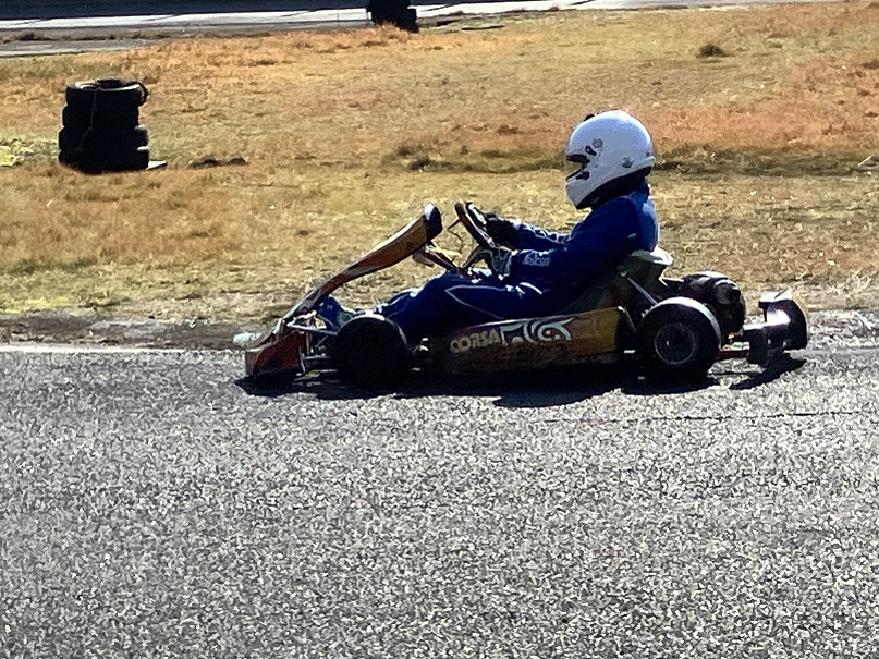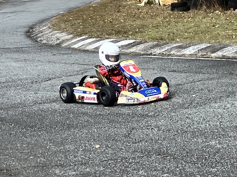 キッズカートスクールは、TOKIくんリピート頂きました。久々のスクールと前回の復習。ピットロードからのコースイン、ピットインと手の合図、目視確認も含め繰り返し練習、少しずつ周回数も増やして行きました。