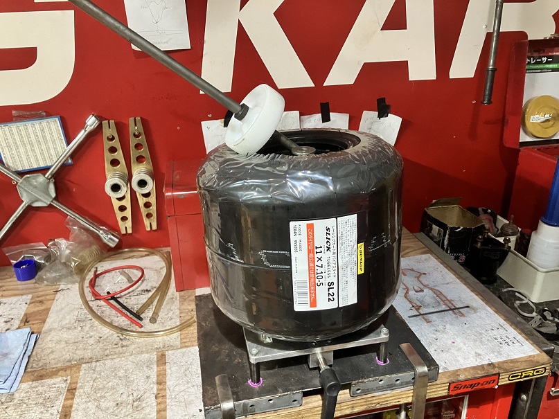 本日のWORKその2タイヤ組み付け 2025年11月27日 フレームメンテナンス 本日入荷したダンロップSL22早速組み付けさせて頂きました。寒くなってくると、ただでさえ硬いショルダー部がより硬く(汗)体が温もりました。(笑)