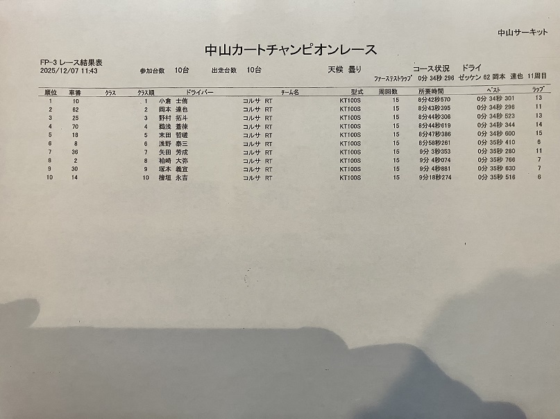 本日7日は晴天の元、岡山県・中山サーキットにて中山カートチャンピョンシリーズの第7戦(最終戦)が開催されました。KTクラスのみとなりましたが、10台エントリーを頂き成立と和気あいあいの中にも、ドライバーさんは、レースが始まると真剣勝負!全ヒートリタイヤ無しガチンコバトルとなりました!!メカニックに応援の皆様も、沢山お集まり頂き、盛り上がりました。素晴らしいレースにご協力頂きました皆々様ありがとうございました。