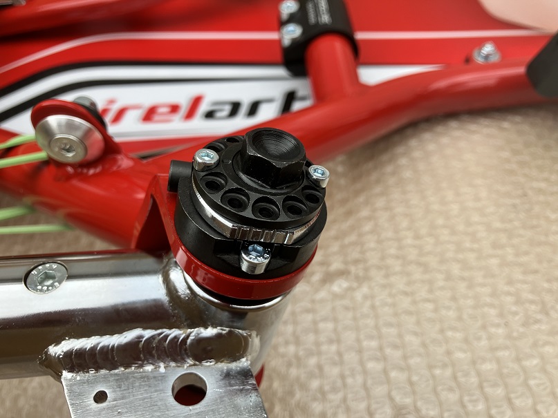 外観はグラフィックの変更。大きくは、フロントのアライメント調整アジャスターが、従来のパーツからキャンバー、キャスターが独立して動かせるパーツに変更となり、セッティング幅が増します。又ステアリングシャフトのボールジョイント部が8mmから10mmに変更と耐久性の向上を図る。