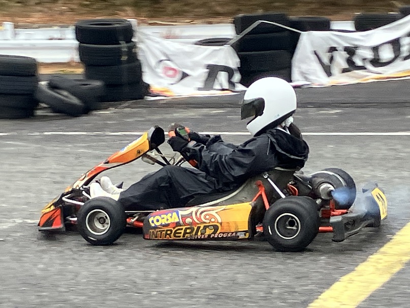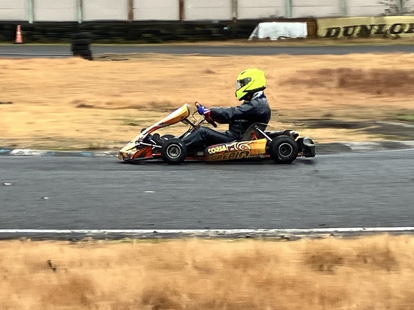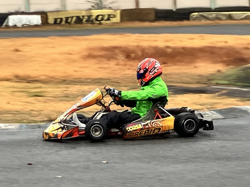 キッズカートスクールは、お二人様。お互いの休憩時間に走行と共にハーフウエット路面は、初めてにレインタイヤをチョイス。走行前にラインどり、ペダルワークをアドバイスさせて頂きました。AROWくん、最初のセッションでは、スピンも多くしましたが、徐々にパダルワークが良くなり比例してタイムアップとなりました。OUGAくんも、最初のセッションで見事なスピン(笑)ラインどりを意識し、慎重になり過ぎましたが、上手く走行出来ました。