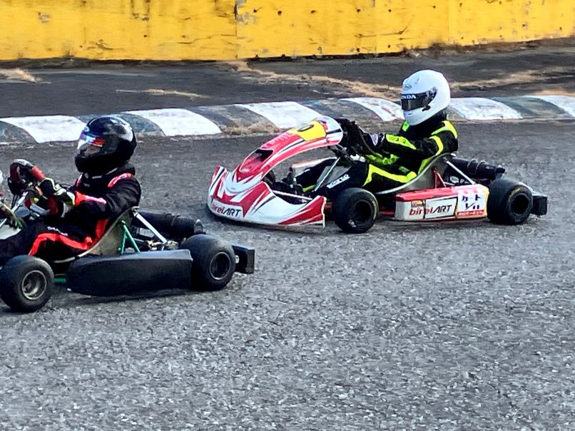 チーム練習会は、2日連続走行のKTクラスのSORAIくん、SHIYUくん。本日は、先輩KOUくんが走行と、言葉で語るよりバトル、走りで語る。SORAIくん&SHIYUくん、共にカートの動かし方の刺激になったようです。