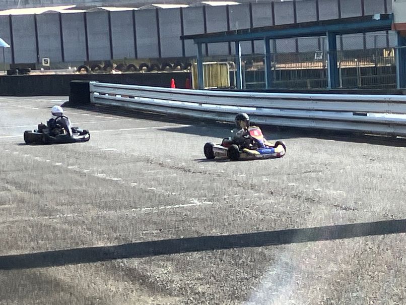 コースのお昼休み時間を利用したキッズ・カデットカートスクールは、ご兄弟にてリピート頂きました。お兄ちゃんYU~TOくんカデットマシンにて、3コーナー全開走行出来ました。弟のRUIくん、キッズマシンにて2コーナーハードブレーキングが、出来るようになりました。。。その分立ち上がりにお釣りが・・・(笑)