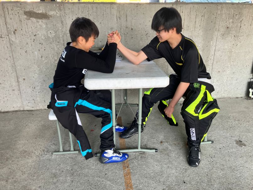 キッズ・カデットカートスクールは、Uくんご兄弟リピート頂きました。今回もタイムを記録しながらセッション毎に具体的なアドバイスをさせて頂きました。カデットカートのYU~TOくん、一気にタイムアップと自信からか、最終セッションでは、4秒Upの自己ベスト更新となりました。キッズカートのRUIくん、お兄ちゃんに刺激されたか、こちらも自己ベストを大きく更新となりました。