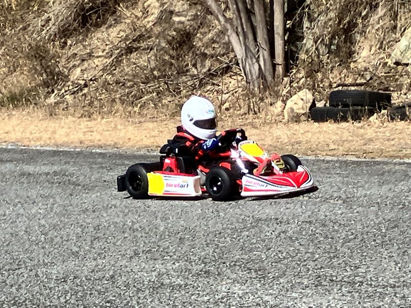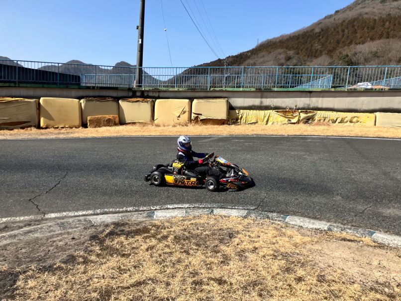 そしてもう一人は、RUIくん。来週開催の中山カートチャンピョンシリーズ開幕戦に初参戦と、おにゅうのレーシングスーツを身に纏い、レーススペックのキッズマシンにて初走行。ルールと旗説明、スタート練習を行いました。
