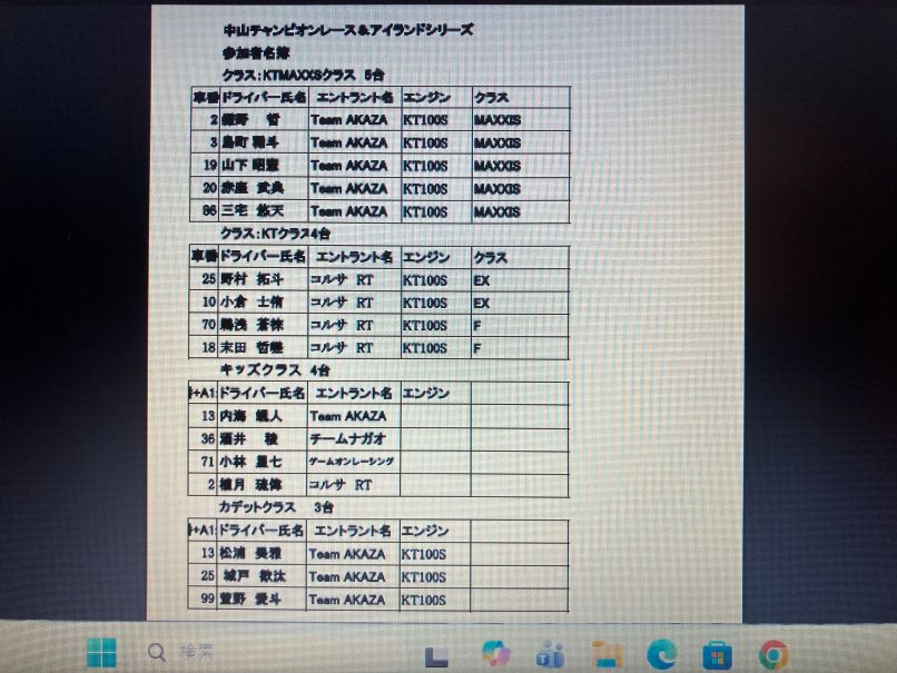 今週末の中山カートチャンピョンシリーズ第1戦及びアイランドシリーズ第1戦(中山ラウンド)のエントリーリスト及び土曜日走行のタイムスケジュールが発表されました。