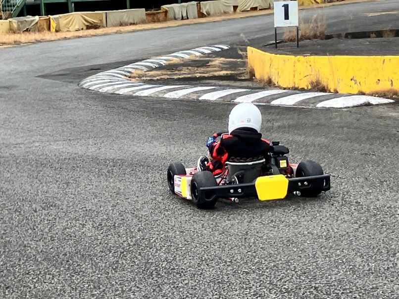 カデットカートスクールは、YU~TOくん。こちらも刺激されたか、1セッション目からペース良く走行。最終セッションでは、アクセルON区間も多くなりエンジン音がもう一段階高くなりました。合わせて自己ベスト更新!
