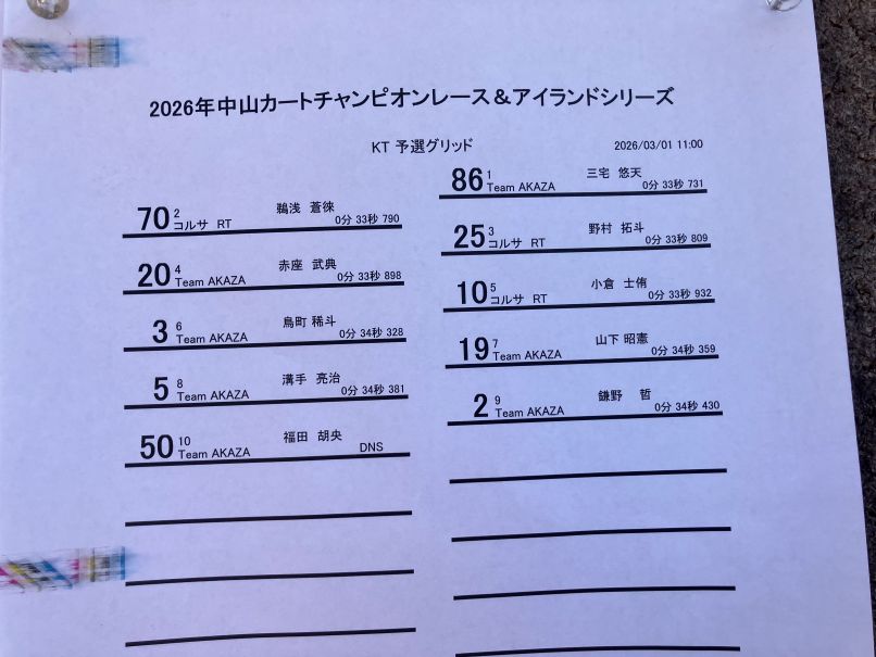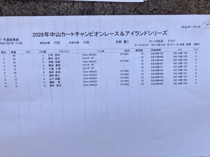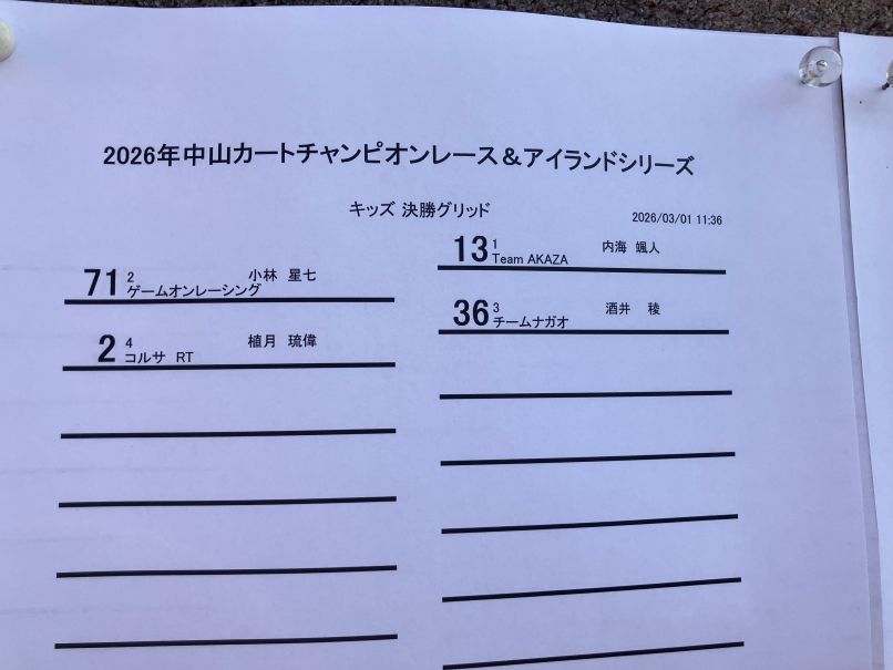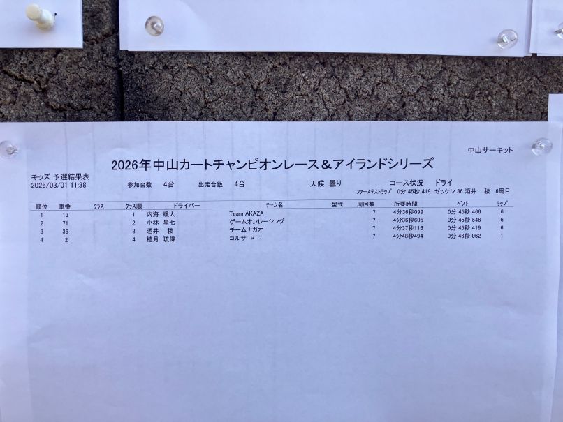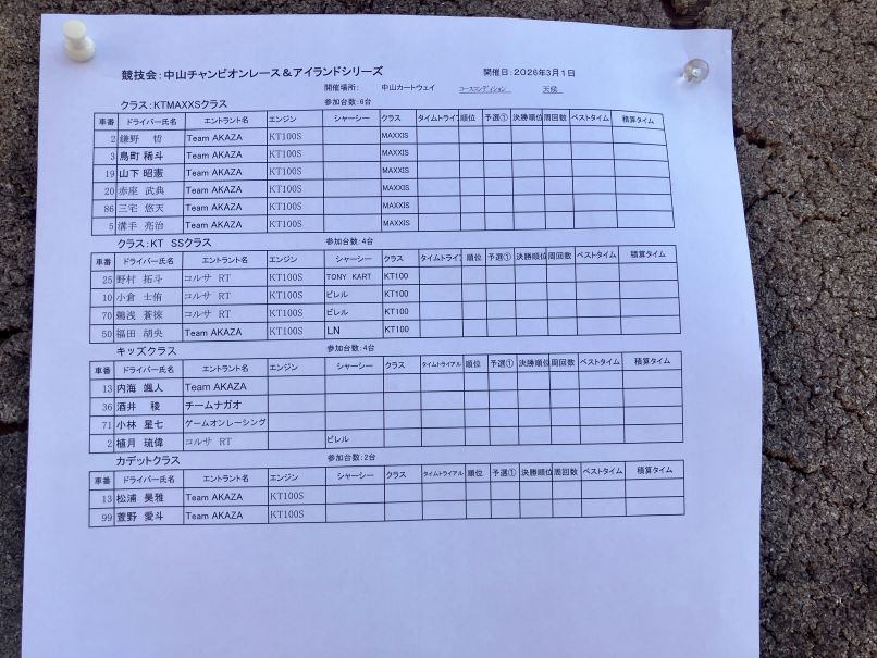 いよいよ本日から3月に入り晴天の下、岡山県・中山サーキットにて、2026年度中山カートチャンピョンシリーズ第1戦&アイランドシリーズ第1戦を迎える事が出来ました。。。。四国地区、中国地区、近畿地区からと4クラスに16名のドライバーが終結!