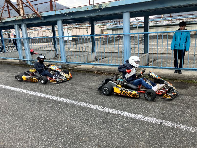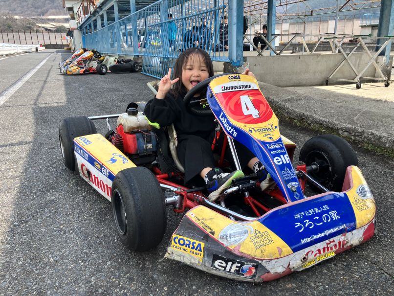 キッズカートスクールは、IORIくんリピート頂きました。3か月ぶりのスクールとなりラインどり覚えてるか不安(笑)もアウトインアウト出来ていました。。。。しかしスピードが遅く(汗)妹が”私が走る”とコメント(笑)もまだペダル届きません(笑)
